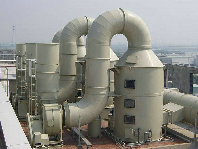 废气进入聚丙烯废气吸收塔,经气体分配器的分配后,在行走的过程中,满足雾化器雾化液体,气体和液体完全饱和接触和物理吸收和化学反应,中和或吸收液体液箱,通过除雾器标准的雾回大气层。
